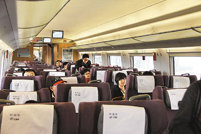 ■記者試乘CRH3型列車時,感覺穿越隧道時有輕微的眩暈和耳鳴感。香港文匯報記者郭若溪 攝