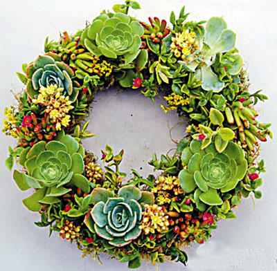 以玉蘭、聖誕子等花種製作的花環,糅合東、西文化。