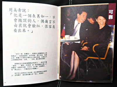 香港文匯報訊 據中評社報道,馬英九夫人周美青確定從元旦後正式投入輔選跑行程,同時將推出100萬份文宣秘密武器「安心手札」,由周美青與一般民眾娓娓道出對馬英九的第一手近身觀察來催票。