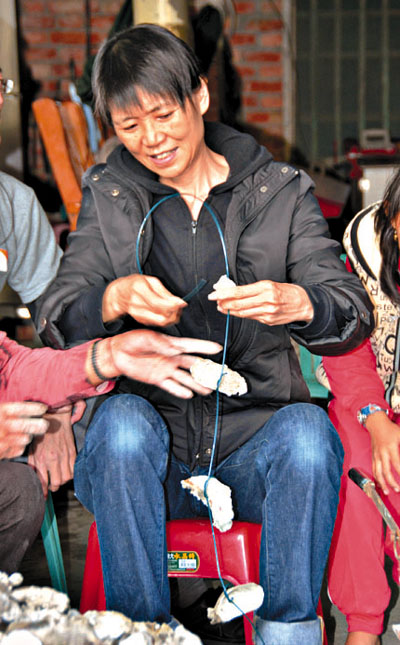 體驗串蚵殼 (圖)