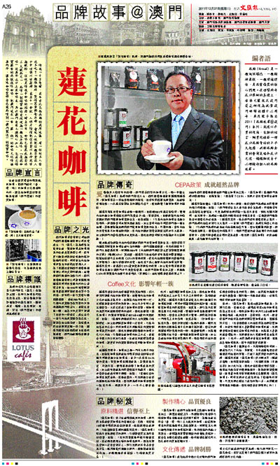 編者語 品牌(Brand)是一種識別標誌、一種精神象徵、一種價值理念,是品質優異的核心體現。在連續兩年成功舉辦的基礎上,香港文匯報及澳門蓮花衛視為祝賀澳門回歸祖國十二周年,再度攜手推出2011「品牌故事@澳門」系列;報道以平實的視角、生動的語言,翔實記錄每一個成功品牌背後的不平凡經歷、剖析品牌企業的營商策略和成功之道,娓娓細說著十二個精彩動人的品牌故事。