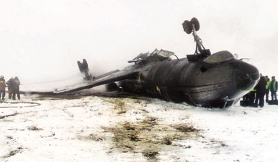 吉爾吉斯斯坦航空一架俄製圖-134客機前日著陸時,機身翻轉並起火,機上82名乘客及6名機員奇蹟生還,僅31人受傷,目前有17人留院。