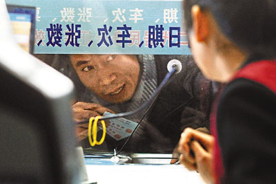 ■1日,在杭州汽車東站火車票大賣場購票的旅客手持身份證在窗口前諮詢。 新華社