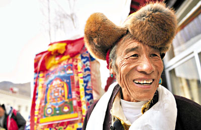 ■前來迎親的洛桑丹增滿面笑容。新華社