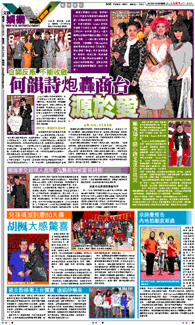 炮轟商台改機制的何韻詩,前晚仍有現身頒獎台上,並為自己「不滿」言論解畫,她承認是個反叛的小孩,為其他人帶來麻煩,但所言一切也是著緊樂壇這個家,出於一份愛。其後阿詩接受訪問時已經「收火」, 覺得自己今次出席沒什麼,不想再重提舊事引發別人不快,新一年向前看,又覺得出席的決定是正確。