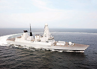除了美軍航母駛入波斯灣外,英國國防部昨日亦證實,海軍將派出旗下最強力導彈驅逐艦「勇敢」號(見圖),於月底前往波斯灣,接替目前在當地服役的護衛艦。報道指,「勇敢」號擁有全球最先進的雷達及截擊系統,足以擊落任何伊朗導彈。