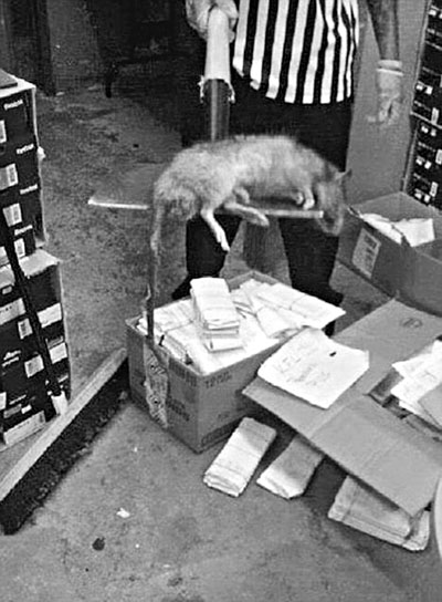 美國紐約市布朗克斯區鞋店Foot Locker的倉庫,據傳發現身形如狗般大的死老鼠,照片被上傳至twitter。專家稱牠是岡比亞巨囊鼠,不少人視作寵物。《每日郵報》