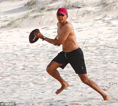 美國總統奧巴馬去年底於夏威夷度假時,赤膊與特勤局友人在沙灘大玩美式足球,罕有地展現活力和「鋼條」身形。奧巴馬於夏威夷的10天假期,還與家人歡度聖誕,拋開競選連任的壓力,與正為總統初選忙得不可開交的共和黨總統參選人可謂差天共地。 ■《每日郵報》