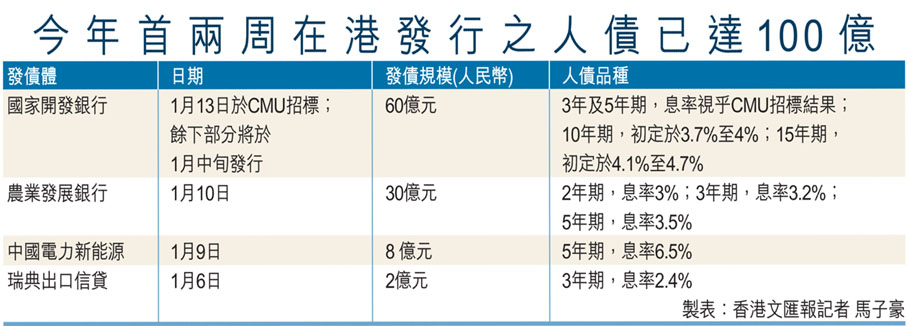 今年首兩周在港發行之人債已達100億