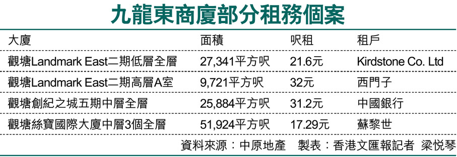 九龍東商廈部分租務個案 (圖)