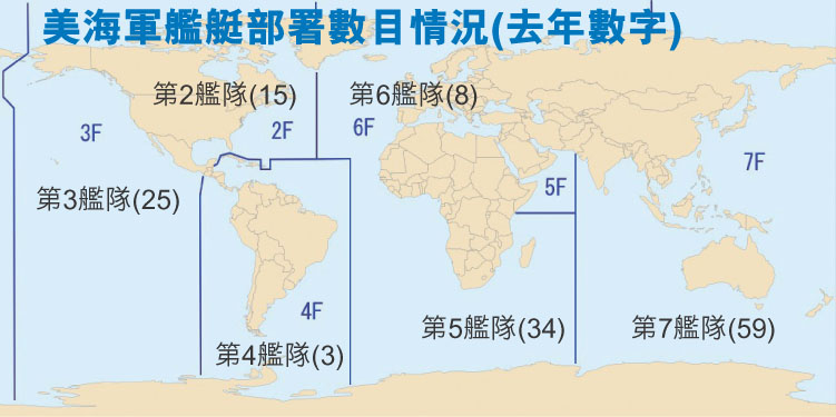 美海軍艦艇部署數目情況(去年數字) (圖)