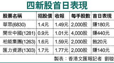 ¡@»´ä¤å¶×³ø°T¡]°OªÌ ¼B梡^¬Q¤é¦³4°¦·sªÑ¦P®É±¾µP¡C¶}¥@¤¤°ê¡]1281¡^¡BµØ²³(6830)©M¶×¤O¸ê·½(1303)§¡ªí²{²z·Q¡A¨ä¤¤¶}¥@¤¤°ê¿ý±o12.22%ªº¤É´T¡A¤£p¤âÄò¶O¡A¨C¤â4,000ªÑÁÈ440¤¸¡FµØ²³¤É6.4%¡A¶×¤O¤É4.2%¡F¦ý¬f¯à¶°¹Î(1263¡^«h·L´T¼ç¤ô¡A¥H1.59¤¸³ø¦¬¡A¸û©ÛªÑ»ù1.6¤¸¤U¶^0.6%¡A¤@¤â»k20¤¸¡C