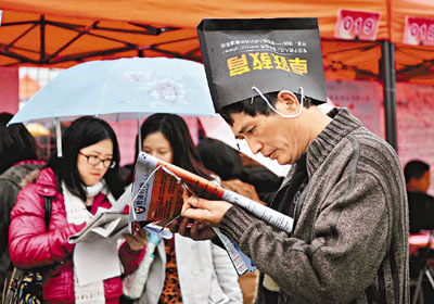 ■14日,福建省大中專畢業生供需選擇見面會舉行,許多下崗工人、外來務工人員也紛紛來碰運氣。 中新社