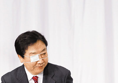日本首相野田佳彥(見圖)昨日上午出現在首相官邸時,讓所有記者為之一驚,原因是他的右眼戴著白色眼罩。當記者問他眼睛出了什麼問題?野田苦笑著說:「眼睛撞了」。據悉,日皇明仁在皇居的新內閣任命儀式上看見野田成了「獨眼龍」,也頗感驚訝。