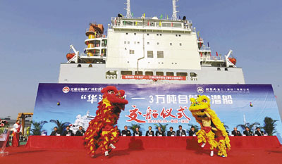 ■招商局重工(深圳)有限公司在孖洲島修造船基地日前舉行了「華海龍」3萬噸自航半潛船交付儀式。 羅康林攝