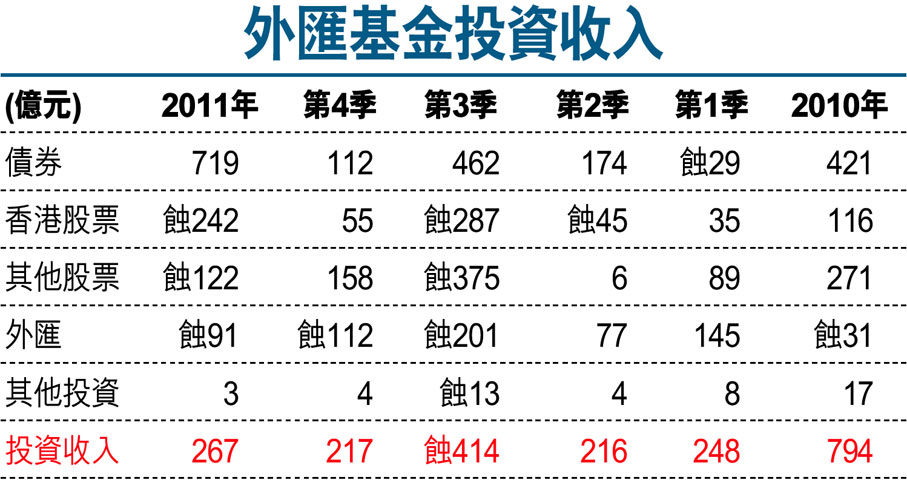 外匯基金賺267億 回報1.1%海嘯後最差 (圖)