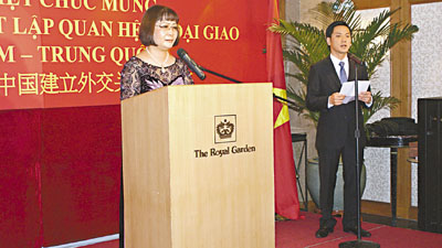 香港文匯報訊(記者 張易)越南駐港澳總領館前日假帝苑酒店舉行晚宴,慶祝中越建交62周年。越南駐港澳總領事阮氏雅,中國外交部駐港特派員公署特派員呂新華、副特派員洪小勇等近五十位兩國外交人士出席。