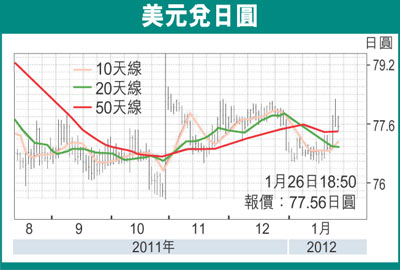另一方面,日本去年度出現30年以來的首次貿易逆差,這除了是反映日本去年3月的大地震以及偏強的日圓匯價均對日本的出口構成不利影響之外,該情況亦已引致部分投資者在近日傾向掉頭回補美元兌日圓空倉,並且令美元兌日圓得以再度觸及78水平。此外,在日本央行已將日本去年的經濟成長預測下調至萎縮0.4%後,不排除日本央行往後將會繼續推出新的寬鬆措施,這亦不利日圓往後的表現。受到日圓兌各主要貨幣皆於近日進一步轉弱之下,預料美元兌日圓將反覆走高至78.40水平。