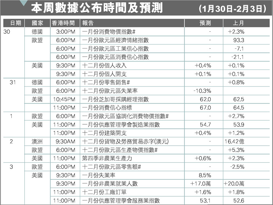 本周數據公布時間及預測(1月30日-2月3日) (2012-01-30) (圖)