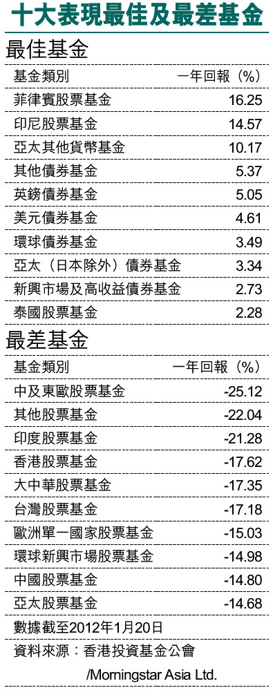 十大表現最佳及最差基金 (2012-02-01) (圖)