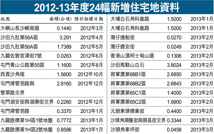 2012-13年度私人住宅 土地供應量預測 (圖)