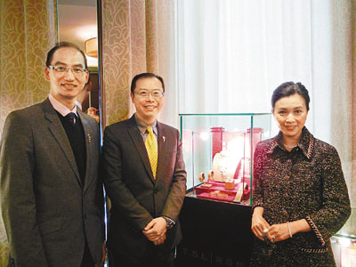 ■謝瑞麟執行董事兼財務董事黎子武(左),首席營運總監陳立業(中),主席兼行政總裁謝邱安儀。 香港文匯報記者黃詩韻 攝