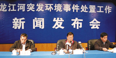 ■廣西官方在柳州市召開新聞發布會,通報龍江河污染事件相關責任人處理情況。 中新社
