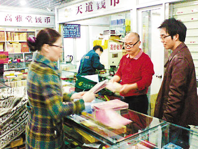 在深圳羅湖書城郵票錢幣收藏市場,昨日50個商家中有近一半商家都在銷售中行紀念鈔,由於每個商家數量只有十多個單張,一會兒便被內地投資者搶購一空。深圳錢幣收藏市場資深商家高先生告訴記者,他獲悉中銀昨發行中行百年紀念鈔,他與7個內地朋友前晚連夜赴香港元朗中銀排隊申請,共申請了14個單張百元紀念鈔,帶回深圳後受到投資者追捧,每張均以1,100元成交,他與朋友一起賺了1萬多元。