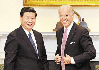 ■國家副主席習近平14日在白宮與美國副總統拜登會談。 新華社