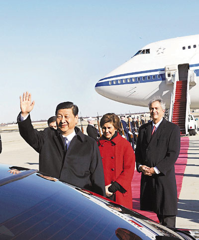 ■中國國家副主席習近平抵達華盛頓,開始對美國進行正式訪問。美國常務副國務卿伯恩斯到機場迎接。 新華社
