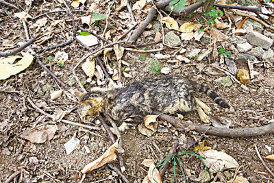 香港文匯報訊(記者 鄧偉明、杜法祖)黃大仙一間小學,連日來發現多隻貓屍,昨晨校工再於校園發現6隻死貓及1隻垂危小貓,認為事有可疑報警求助,記者到場採訪時,在學校對開山坡又發現1隻剛死去不久的小貓,4日合計最少已有11隻小貓慘死。由於所有貓屍並無明顯傷痕,警方不排除有「貓殺手」出沒毒殺貓隻,暫將案列作「虐待動物」處理,正深入調查狂徒殺貓動機。而漁護署稍後將對貓屍進行檢驗,以確定死因。