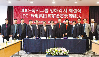 ■JDC及綠地集團諒解備忘錄締結式現場。