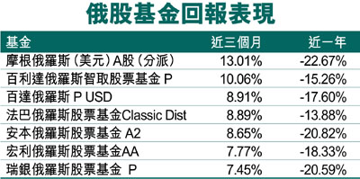 俄股扭轉去年的頹勢,當地大盤RTS指數今年以來就漲了21.03%,而追蹤14家在美上市俄企的彭博俄美14指數也漲了20.52%。有分析指出,以俄股目前約6.1的市盈率,仍是目前新興股市中最便宜的,只要全球風險偏好不降溫,充裕的流動性有望支撐俄股再上層樓。