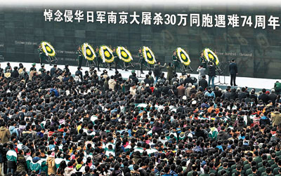 ■中國人民不會忘記侵華日軍屠殺了30萬南京同胞的罪行。 新華社