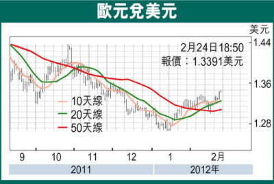 ¡@¼Ú¤¸§I¬ü¤¸¶×»ù¥»©Pªì¦b1.3155ªþªñÀò±o¸û¤j¤ä«ù«á¡A¨ä¨«¶Õ¤w³vº¥Áͩ󰾱j¡A¦b¥ý«á¦V¤W½Ä¯}1.3200¤Î1.3300¤ô¥«á¡A§ó¤@«×©ó¥»©P¤¤ÏÂШ«°ª¦Ü1.3385ªþªñªº¨âÓ¦h¤ë¨Ó°ª¦ì¡C¥Ñ©ó§ÆÃ¾±NÀò±o¼Ú·ù·s¤@½üªººò«æ±Ï§U¶U´Ú«á¡A¥«³õ¹ï¼Ú¶Å¦M¾÷ªº¾á¼~¤w¬O¼È®É¦³©ÒÓV½w¡A¦]¦¹·í¼w°êIfo«ü¼Æ±q1¤ë¥÷ªº108.3Ãk¤É¦Ü2¤ë¥÷ªº109.6¤§«á¡A§ë¸êªÌ¤w¬O¶X¾÷¦b¥»©P¥|¶i¤@¨B¦^¸É¼Ú¤¸ªÅܽL¡A¸Ó±¡ªp¥ç¬O¾ÉP¼Ú¤¸§I¬ü¤¸±o¥H»´©ö©¹¤W½Ä¯}1.3300¤ô¥ªºì¦]¤§¤@¡CÁöµM¼Ú·ù©eû·|¤w¹w´ú¼Ú¤¸°Ï¸gÀÙ±N¦b¤µ¦~¥X²{t0.3%ªº·Å©M°I°h¡A¦ýÀHµÛ¸Ó®ø®§¤w¨³³t³Q¥«³õ©Ò®ø¤Æ«á¡A§ë¸êªÌªºÃöª`«ÂI¤w¬OÂಾ¦Ü¼Ú¬w¥¡¦æ©ó¤U©Pªº²Ä¤G½üªø´Á¦A¿Ä¸ê¾Þ§@(LTRO)¤W¡A©Ò¥HYªG¼Ú¬w¥¡¦æ¤U©P¦V»È¦æ·~ªº¶U´Ú³W¼Ò¤@¥¹¬O§C©ó¤W¦¸¦b12¤ë®Éªº4,890»õ¼Ú¤¸¡A«h¤£±Æ°£¼Ú¤¸§I¬ü¤¸±N·|©µÄòªñ´Áªº¤É¶Õ¡C