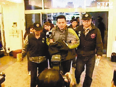 警方指出,38歲搞手蔡育林(圖中)在19日當天要求參加者身穿西裝,並在台北火車站集合,以匯款單和網站站內信作為核對身份資料,等確認無誤後,參加人員被帶往列車內等候。