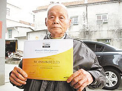 香港文匯報訊 據《聯合報》報道,高雄旗山溪洲91歲蕉農柯金吉,85歲才開始學電腦,連電腦開機都不會的他,憑著不服輸的精神,現在不僅會上網,去年更考取微軟國際專業證照。更有電腦公司表示,將帶他參加今年8月在美國拉斯維加斯舉辦的「世界盃電腦應用技能競賽」,讓世界認識這位91歲的「台灣歐吉桑」(歐吉桑,台語指老伯)。