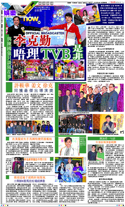 有指他跟TVB老闆陳國強相熟,應該知道消息,克勤稱:「我們見面不談公事,話題風花雪月,朋友還朋友,總之沒在任何途徑收到新條款,所以會跟舊規矩而行。(暫時只得你一個亮相TVB?)不是,阿倫和Kelly都亮相過,總之波還波,歌還歌,跟now的合作純粹是足球節目主持,而且國有國法,家有家規好公平,TVB有筍炟q自己友好正常,希望可以從他們手指隙沾到一些。(跟now合作期間可否亮相TVB?)我和now的合約至七月頭左右而已,期間會到外地現場講波,now台很好,問我太太和囝囝會否同行,不過囝囝尚細,不會帶他去。」陳志雲昨日正式離職TVB,克勤透露大家一直有聯絡,但少談公事,既然他已不是TVB人,日後什麼都可以談,對方是好學之士、也是良師益友,但不知他的去向,著大家問何麗全好了。
