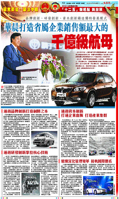 華晨打造省屬企業銷售額最大的千億級航母 (2012-03-06) (圖)