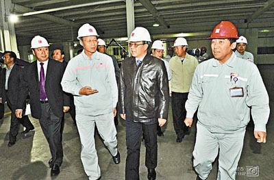 ■自治區黨委書記、人大常委會主任胡春華(右二)在企業調研。