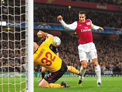 只差1球!昨晨歐洲聯賽冠軍盃(歐聯)16強次回合,阿仙奴上半場狂風掃落葉連追3球,差1球便能如領隊雲加所言「將不可能變可能」,逼首回合領先4:0的AC米蘭踢加時,隨時可望在主場製造反勝奇蹟。嚇出一身冷汗的AC米蘭下半場及時「回魂」,憑藉門將艾比亞迪神勇救出尹佩斯的必入球,有驚無險力守4:3的總比數晉級8強。槍手出局,卻踢出了尊嚴一戰,雖敗猶榮。