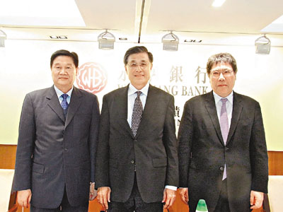 ■馮鈺斌(中)稱,由於內地貸款利潤較本港高,未來會力拓珠三角中小企及機器租賃貸款。 香港文匯報記者余美玉 攝