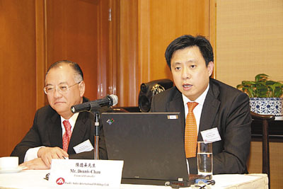 ■太平洋恩利記者會。左起:副主席黃裕翔、財務總監陳德熹。 香港文匯報記者趙建強 攝