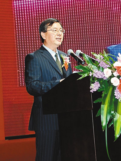 ■深圳市龍崗區區長姜建軍在「2012年深圳市龍崗區春茗聯誼會」上講話。香港文匯報記者羅珍 攝