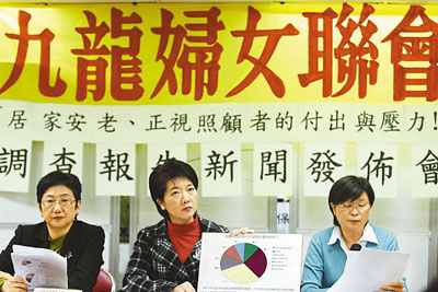 九龍婦女聯會會長鄭臻介紹說,該會委託浸會大學社會學系及社會科學研究中心於今年2月2日至9日,以電話抽樣訪問510位30歲或以上,在家庭中負責照顧65歲或以上長者的人士,了解他們的家庭狀況、被照顧者的情況、對政府長者支援服務的使用情況、對「社區養老、家居養老」的看法等。
