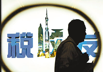 ■一名行人從上海街頭的稅收廣告牌旁走過。 新華社