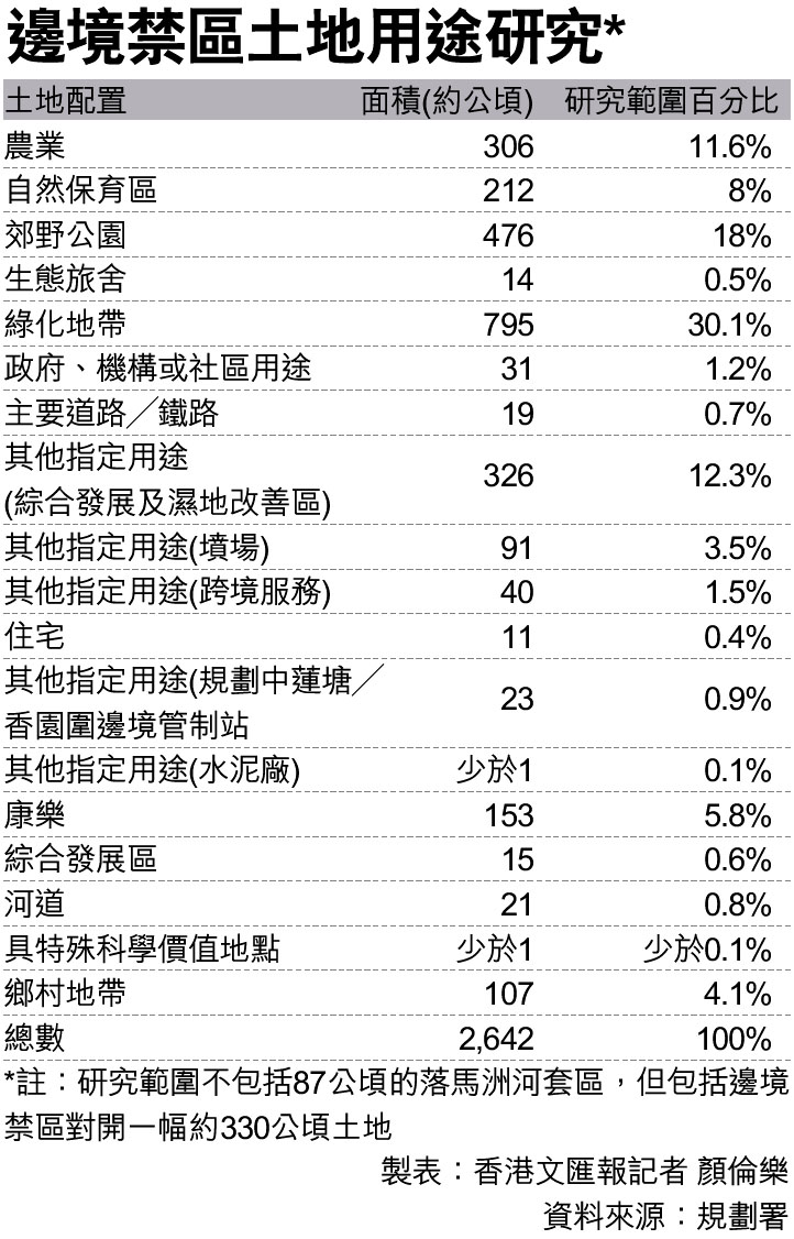 *註:研究範圍不包括87公頃的落馬洲河套區,但包括邊境禁區對開一幅約330公頃土地 製表:香港文匯報記者 顏倫樂 資料來源:規劃署