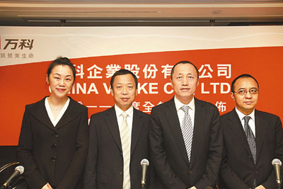 ■左起:萬科執行副總裁肖莉、執行副總裁王文金、總裁郁亮、董事會秘書譚華杰。香港文匯報記者趙建強 攝