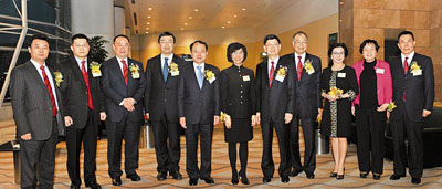 ■中聯辦副主任王志民(左五),廣東省委統戰部常務副部長蔣樂儀(左六),中聯辦協調部部長沈沖(左四)與客屬總會部分首長(左起)陳達豪、曾智明、余鵬春、梁亮勝、張慶華、古爾夫、蕭七妹及梁錫光合影。