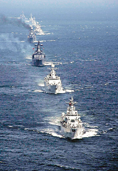 根據兩國海軍專家擬定的海上特混編隊演習計劃,俄軍以「瓦良格」號大型反潛艦為旗艦,組合導彈巡洋艦、驅逐艦和護衛艦、輔助船從四月中下旬啟航,穿過朝鮮海峽進入中國黃海地區,並在相關海域進行海上聯合軍事演習。專家表示,在演習中,中方也不排除海軍航空兵和潛艇部也出動同等兵力實施對抗演習,屆時,中方岸導部隊也將同時介入演習。